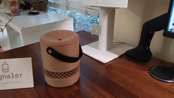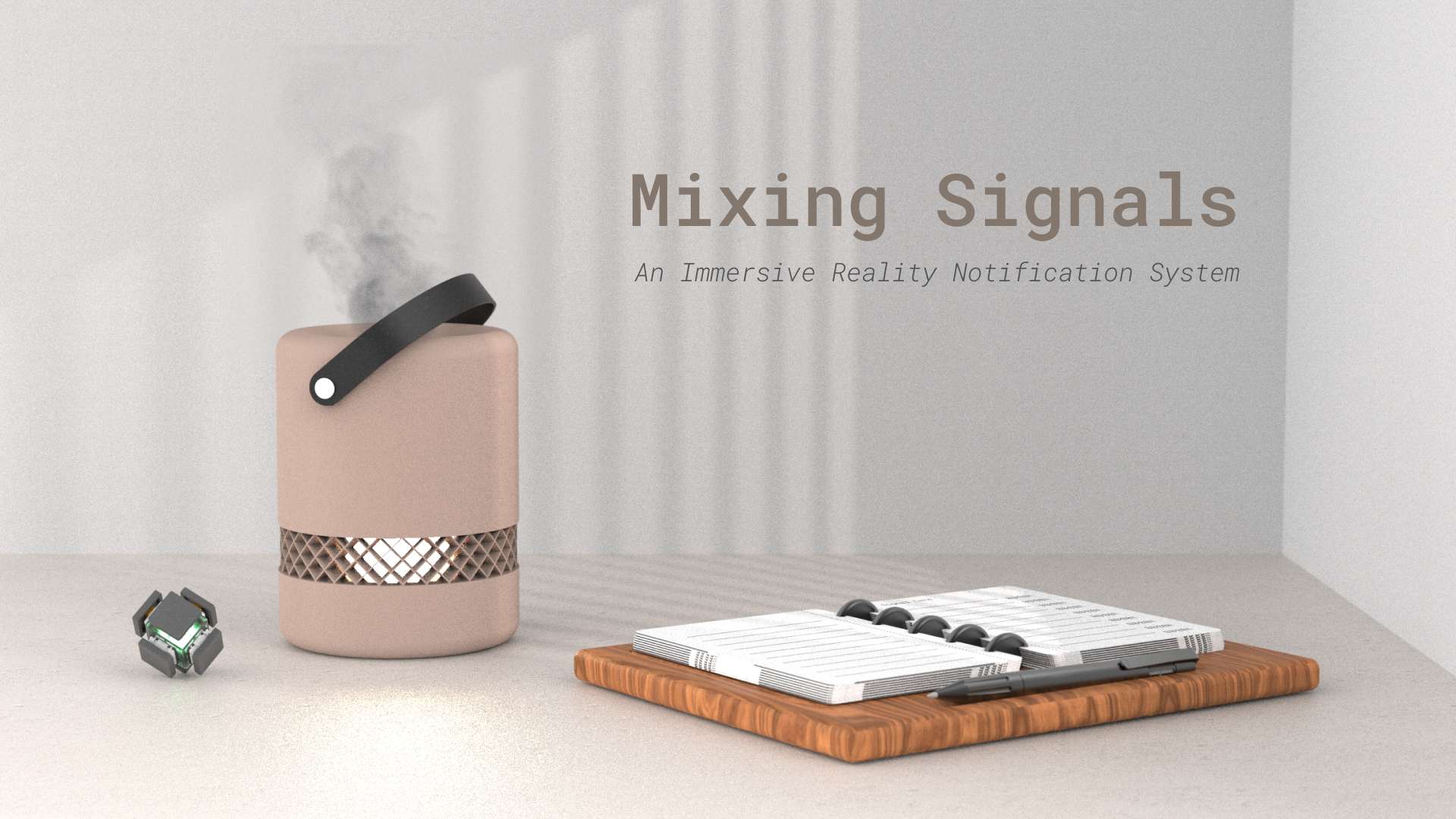 Mixing Signals re-imagines the world of notifications through layers of immersive reality. Notifications come to life through a multi-sensory experience driven by mechatronics, digital UI and the Hololens headset. The Signal System seamlessly integrates digital features with ambient computing, ensuring users remain connected to their surroundings.