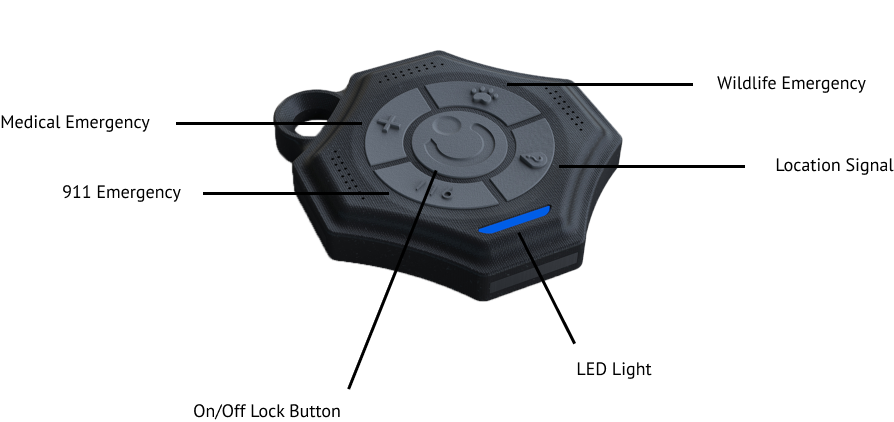 A small and portable GPS device able to send emergency signals to relevant social services such as park rangers or the local fire station