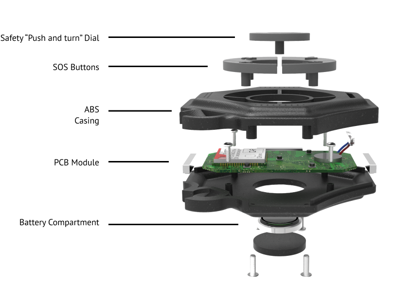 The GPS module is a device given by park rangers to hikers at the trailhead/visitor center. The device sends location data passively to the dashboard. It also sends various distress signals when “activated” - a lightweight but powerful means of staying in contact with trail and safety personnel.